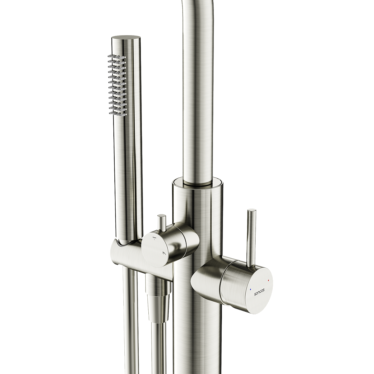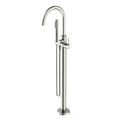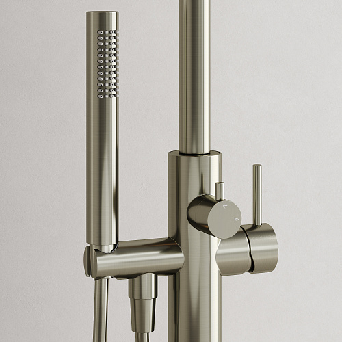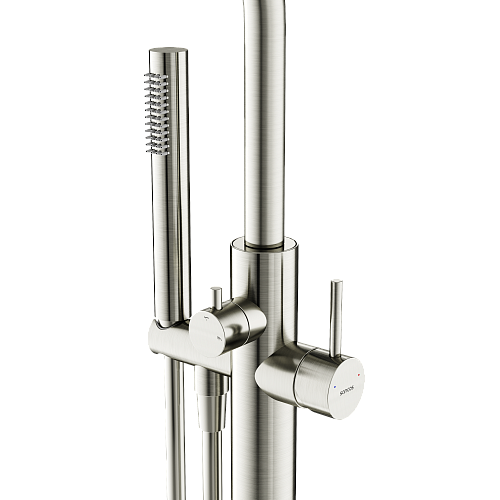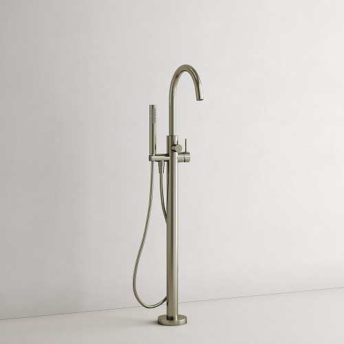 Смеситель для ванны напольного монтажа; Надежный корпус из высококачественной латуни; поворотный излив; Картридж CITEC - обеспечивает точную настройку температуры и плавное управление напором; аэратор Neoperl смягчяет воду и препятствует разбрызгиванию; Встроенный девиатор автоматически переключает поток с душа на излив при закрытии воды; ручной душ выполнен из лутуни; шланг ПВХ с функцией антискручивания, длиной 1,25 м; Экстра прочное покрытие PVD; цвет брашированный никель