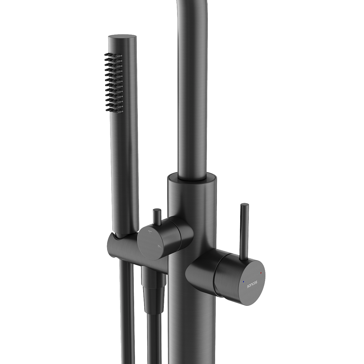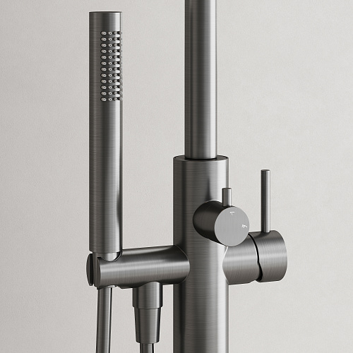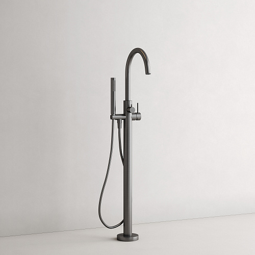 Смеситель для ванны напольного монтажа; Надежный корпус из высококачественной латуни; поворотный излив; Картридж CITEC - обеспечивает точную настройку температуры и плавное управление напором; аэратор Neoperl смягчяет воду и препятствует разбрызгиванию; Встроенный девиатор автоматически переключает поток с душа на излив при закрытии воды; ручной душ выполнен из лутуни; шланг ПВХ с функцией антискручивания, длиной 1,25 м;