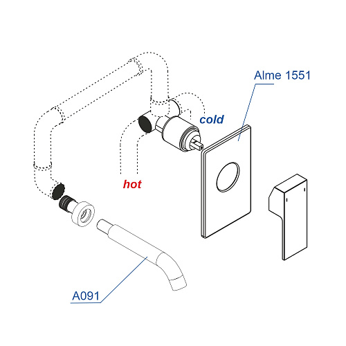 Оснащение Смеситель для душа Alme 1551, Настенный излив для ванны A091