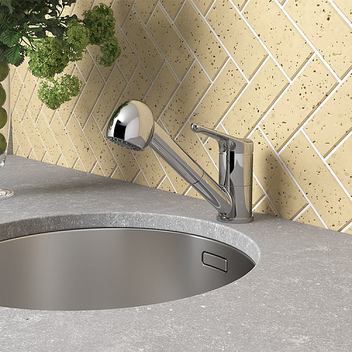 Однорычажный смеситель для кухни PILOT, несмотря на компактные габариты, станет незаменимым помощником в доме: благодаря выдвижной лейке можно легко набрать воду в глубокие емкости вне мойки, сполоснуть посуду разной формы, а поворотный излив сделают использование еще комфортнее. Лейка позволяет регулировать напор потока воды в зависимости от задач ползователя. Большая ручка смесителя, расположенная сверху, позволяет включить воду запястьем или локтем, если руки испачканы.