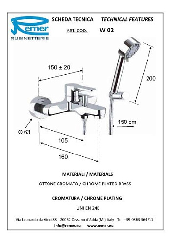 Оснащение Держатель для душа, аэратор, крепления, эксцентрики, душевая лейка, душевой шланг.