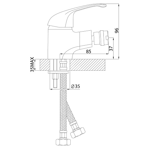 Смеситель Rossinka A35-51 для биде. Пластиковый поворотный аэратор с функцией легкой очистки, керамический картридж 5 мм, гибкая подводка 30 см – 2 шт. Присоединительная группа для горизонтального крепления.