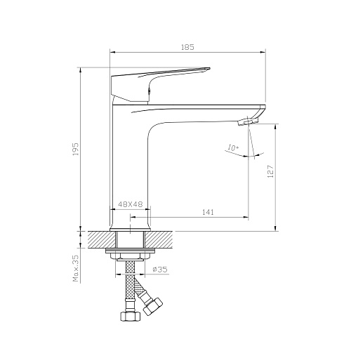 Длина излива (расстояние от корпуса смесителя до конца излива): 14.1 см