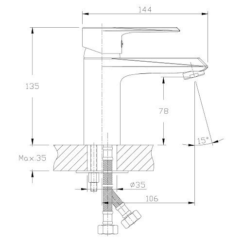 Длина излива (расстояние от корпуса смесителя до конца излива): 10.6 см