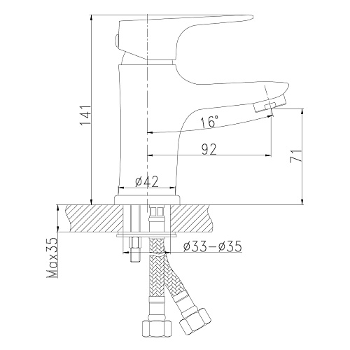 Длина излива (расстояние от корпуса смесителя до конца излива): 9.5 см