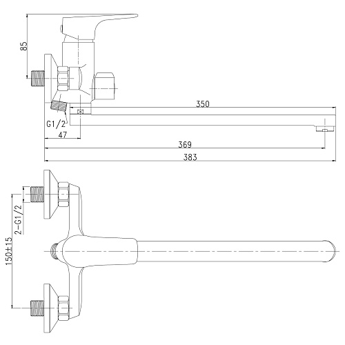 Оснащение Аэратор, переключатель потоков, эксцентрики, держатель для душа, душевая лейка, душевой шланг, настенный держатель.