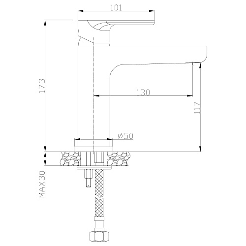 Длина излива (расстояние от корпуса смесителя до конца излива): 13 см