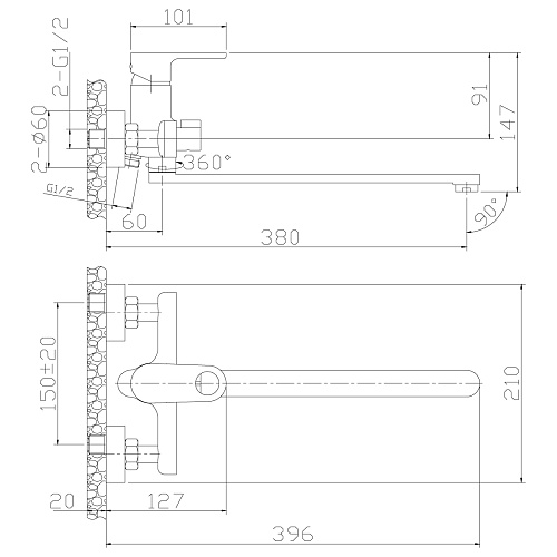 Оснащение Аэратор, переключатель потоков, эксцентрики, держатель для душа, душевая лейка, душевой шланг, настенный держатель.