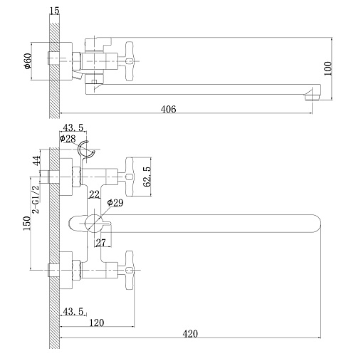 Оснащение Аэратор, крепления, переключатель потоков, эксцентрики, держатель для душа, душевая лейка, душевой шланг.