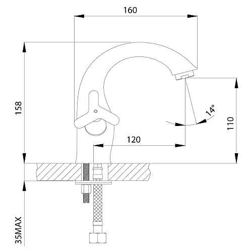 Длина излива (расстояние от корпуса смесителя до конца излива): 12 см