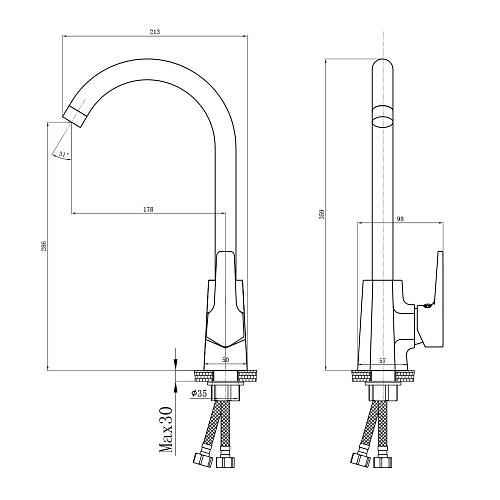 Высота излива: 28.6 см