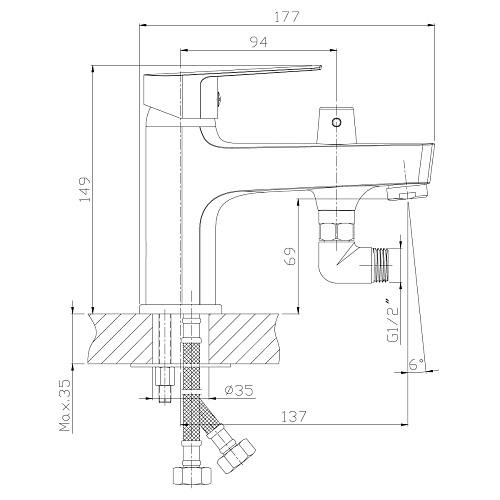 Rossinka S S35-38 – надежный смеситель отечественного производства. Модель с монолитным изливом устанавливается на борт ванны с помощью присоединительной группы. Комплект дополнен душевым гарнитуром: лейкой с пятью режимами струи, двухметровым шлангом и настенным креплением. Поворотный дивертор с керамическими пластинами обеспечивает переключение потоков. Изделие адаптировано к низкому качеству водопроводной воды, поэтому дополнено аэратором с функцией «Анти-Кальций» и душевой насадкой для лейки с системой самоочищения от извести.