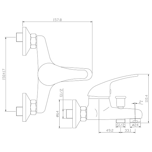 Оснащение Аэратор, переключатель потоков, эксцентрики, держатель для душа, душевая лейка, душевой шланг, настенный держатель.