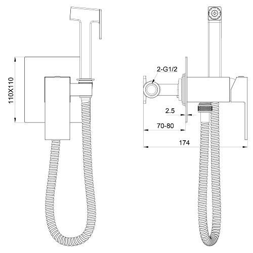 Оснащение Смеситель / Душевой шланг / Держатель для душа / Лейка гигиенического душа / Монтажный комплект