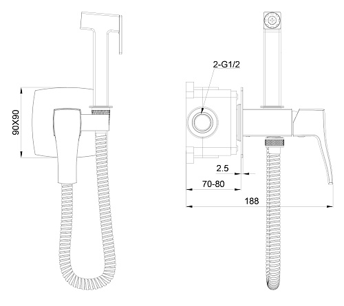 Смеситель с гигиеническим душем Wonzon & Woghand FLEX WW-88829072-BGM