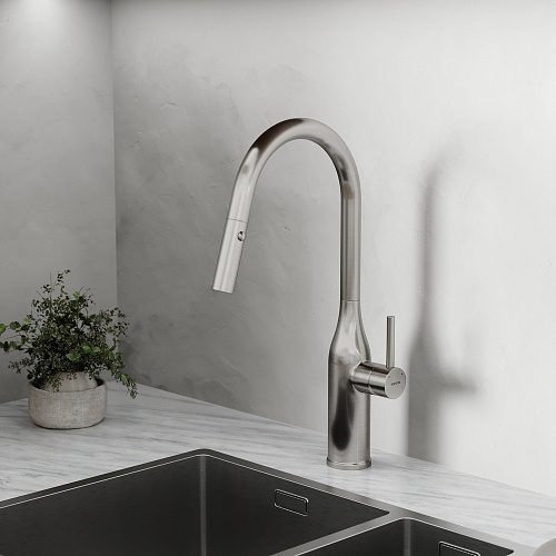 Смеситель Sancos SC4002BNG Grand для кухни с вытяжным изливом, нержавеющая сталь