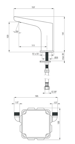 Смеситель Deante BQH_N28V Hiacynt для раковины сенсорный, без регулировки температуры, сети 230/6V, Nero (черный)