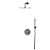 - автоматический переключатель; - верхний душ D=300 мм: латунь; - длина кронштейна верхнего душа 395 мм: латунь; - душевой шланг в металлической оплетке; - длина шланга 150 см; - ручной душ, 1 режим: латунь; - встраиваемая часть смесителя в комплект