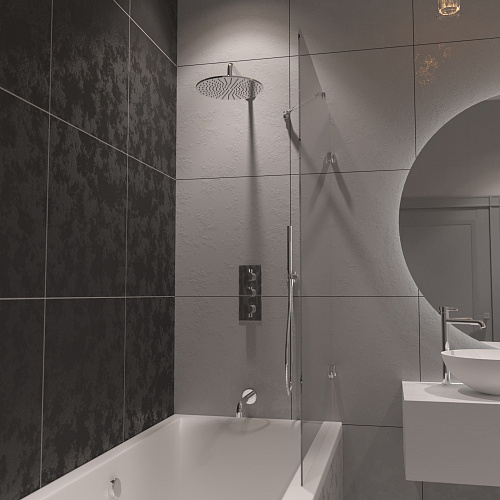 - запорно-переключающий вентиль; - верхний душ D=300 мм: латунь; - длина кронштейна верхнего душа 395 мм: латунь; - душевой шланг в металлической оплетке; - длина шланга 150 см; - длина излива 210 мм: латунь; - ручной душ, 1 режим: латунь; - встраи