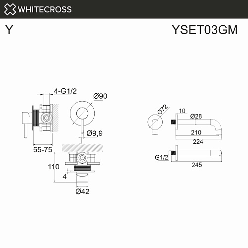 Смеситель скрытого монтажа Whitecross Y gunmetal YSET03GM