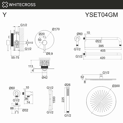Смеситель скрытого монтажа Whitecross Y gunmetal YSET04GM