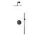 - автоматический переключатель; - верхний душ D=300 мм: латунь; - длина кронштейна верхнего душа 395 мм: латунь; - душевой шланг в металлической оплетке; - длина шланга 150 см; - ручной душ, 1 режим: латунь; - встраиваемая часть смесителя в комплект