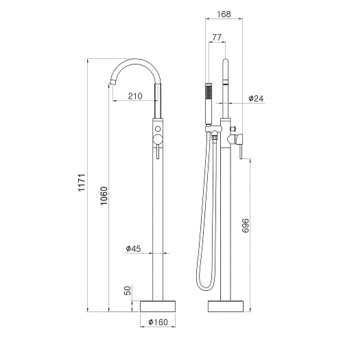 Смеситель Swedbe 4000 Spira для ванны, напольный, хром
