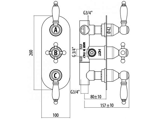 Смеситель термостатический для ванны/душа Gattoni VIVALDI TS994/12C0cr
