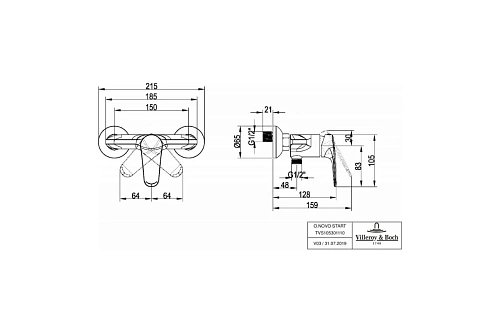 Смеситель Villeroy & BochTVS10530111061 O.Novo Start для душа однорычажный, хромированный