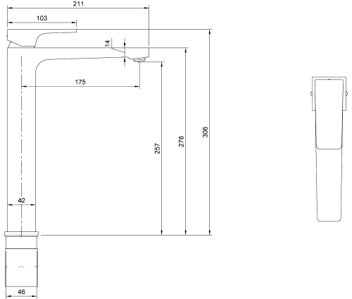 Смеситель Villeroy & BochTVW125002000K5 Architectura Square для раковины однорычажный, черный матовый (Black Matt)