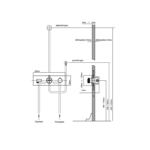 Смеситель Vincea VSCV-422TBG для душа, двухфункциональный, термостатический, золото