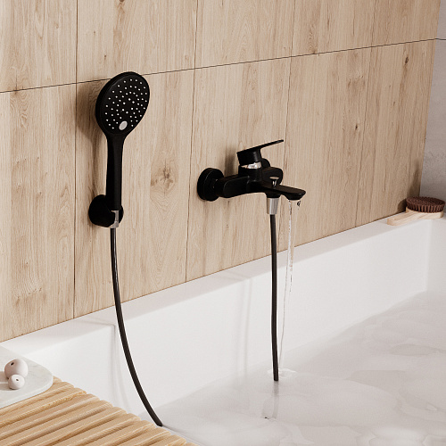 Смеситель WasserKRAFT 7401 Elbe для ванны, с коротким изливом, черный Soft-touch
