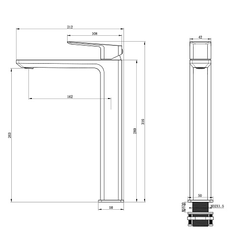 Смеситель для раковины высокий WONZON & WOGHAND DIAMOND, Брашированный никель