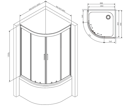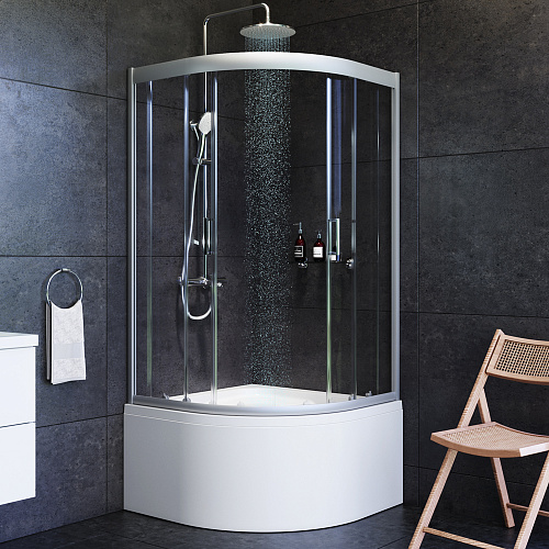 Система крепления профилей QuickFix - простой и быстрый монтаж душевого ограждения. Надежные хромированные двойные ролики – не менее 150 000 открываний. Прозрачное закаленное стекло толщиной 5 мм. Ручка из алюминия. Высота ограждения без поддона 1900 мм.