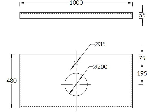 Столешница из керамического гранита Роверелла с отверстием под смеситель. Отверстия для раковины и смесителя располагаются в центре. Смеситель устанавливается в столешницу (используйте смесители с подходящим типом установки)