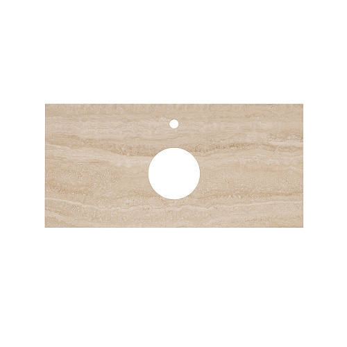 Столешница из керамического гранита Риальто с отверстием под смеситель. Отверстия для раковины и смесителя располагаются в центре. Смеситель устанавливается в столешницу (используйте смесители с подходящим типом установки)