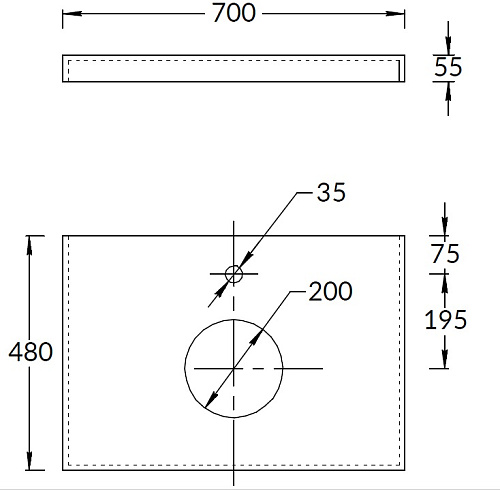Столешница из керамического гранита «Риальто» с отверстием под смеситель. Предназначена для использования раковинами CANALETTO, а также с тумбами MODULA. Отверстия для раковины и смесителя располагаются в центре. Смеситель устанавливается в столешницу (используйте смесители с подходящим типом установки).