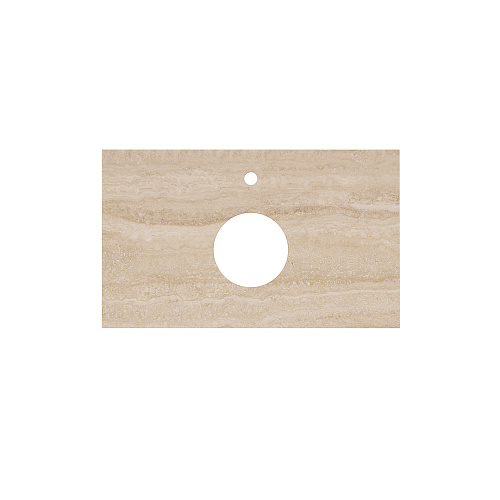 Столешница из керамического гранита Риальто с отверстием под смеситель. Отверстия для раковины и смесителя располагаются в центре. Смеситель устанавливается в столешницу (используйте смесители с подходящим типом установки)