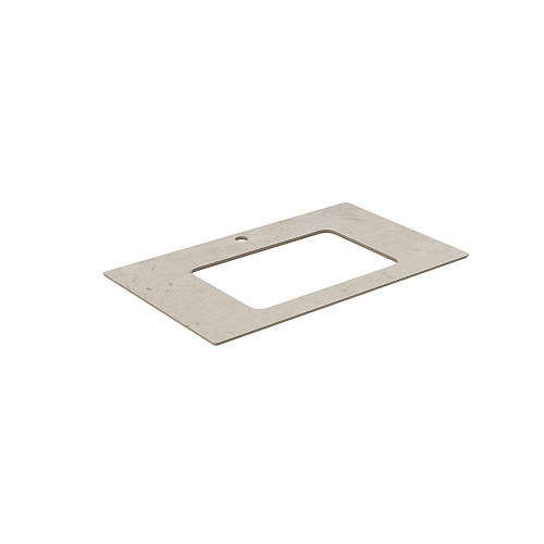 Столешница из керамического гранита «Про Лаймстоун AT» бежевый тёмный натуральный, с отверстием под смеситель. Предназначена для использования с тумбами без внутреннего ящика серии Plaza Classic, со встраиваемыми снизу раковинами PLAZA. Отверстия для раковины и смесителя располагаются в центре. Смеситель устанавливается в столешницу (используйте смесители с подходящим типом установки).