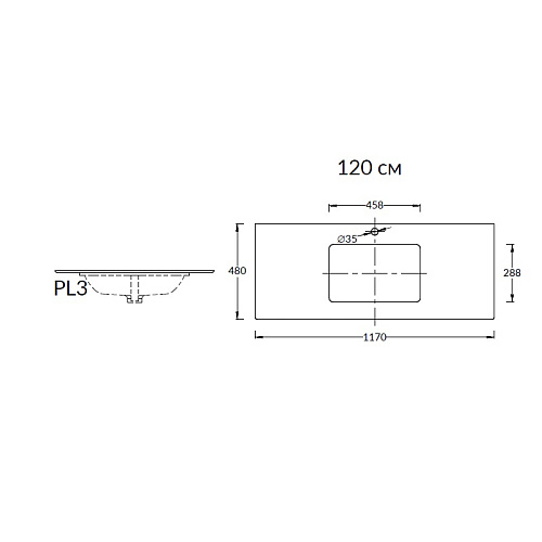 Столешница из керамического гранита Парнас с отверстием под смеситель. Предназначена для использования с тумбами без внутреннего ящика серии Plaza Classic и раковинами, встраиваемыми снизу, серии PLAZA. Отверстия для раковины и смесителя располагаются в центре. Смеситель устанавливается в столешницу (используйте смесители с подходящим типом установки).