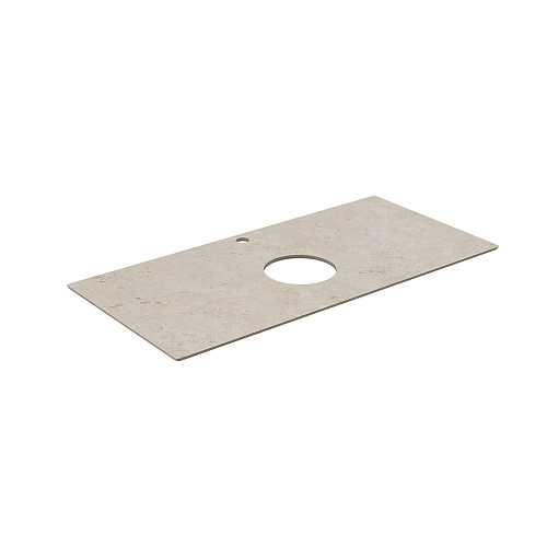 Столешница из керамического гранита «Про Лаймстоун AT» бежевый тёмный натуральный, с отверстием под смеситель. Предназначена для использования с тумбами серии PLAZA Modern и PLAZA Next, с накладными раковинами PLAZA. Отверстия для раковины и смесителя располагаются в центре. Смеситель устанавливается в столешницу (используйте смесители с подходящим типом установки).