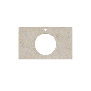 Столешница из керамического гранита «Про Лаймстоун AT» бежевый тёмный натуральный, с отверстием под смеситель. Предназначена для использования с тумбами серии PLAZA Modern и PLAZA Next, с встроенными сверху раковинами Artbasins. Отверстия для раковины и смесителя располагаются в центре. Смеситель устанавливается в столешницу (используйте смесители с подходящим типом установки).