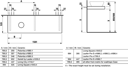 Столешница под раковину Laufen Case 4.0515.2.075.548.1