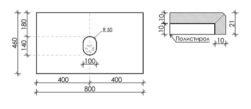 Столешница для ванной комнаты SANCOS 800х460 без отверстия под смеситель, арт. TT80A2
