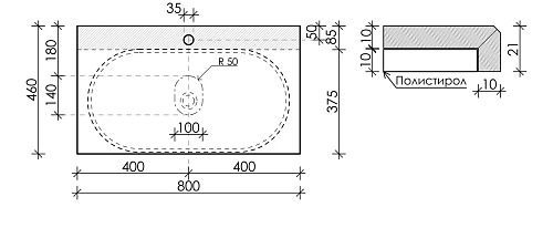 Столешница для ванной комнаты SANCOS 800х460 с отверстием под смеситель, арт. TT80A2X