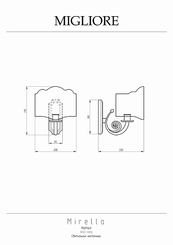 Светильник настенный серии Mirella бренда Migliore – это красивый светильник в классическом стиле. Керамической плафон в форме колокольчика станет хорошим дизайнерским решением для создания спокойного интерьера. Можно повесить один светильник над зеркалом, или разместить два светильника по бокам зеркала в ванной комнате. Данный светильник можно использовать также в любом другом помещении. Материал — латунь, покрытие цвета бронза. Внимание: бронзовое покрытие достаточно деликатное и для ухода рекомендуется протирать изделие мягкой безворсовой тряпочкой с мыльным раствором и вытирать насухо или использовать чистящее средство бренда Migliore для смесителей и аксессуаров с деликатными покрытиями бронза, золото, медь.