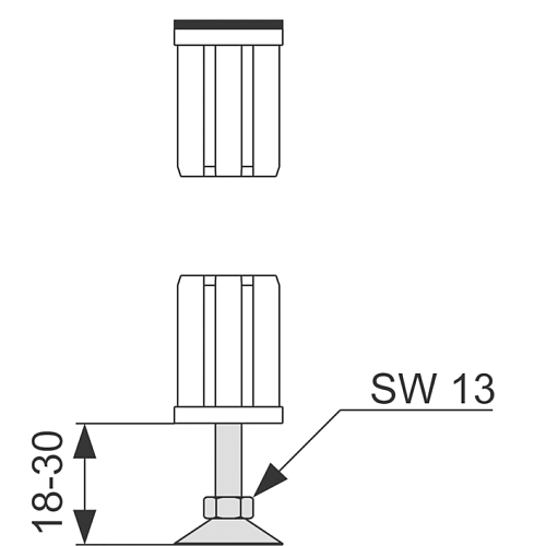 Ножка с торцевым элементом для вставки в профили TECEprofil. Ножка способна нести нагрузку, например, выдерживать вес Стальных ванн. Дополнительные ножки для Стальной ванны не требуются. Комплектация: • Регулируемая по высоте ножка для профилей TECEprofil • Торцевой элемент обрезиненный