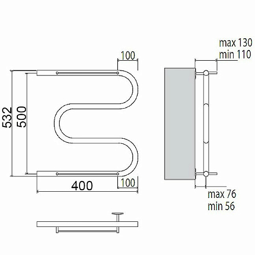 Водяной полотенцесушитель Terminus М-образный 500x400 4620768880322 с полкой, с боковым подключением. Для производства полотенцесушителя используется только высококачественная нержавеющая сталь марки AISI 304L с высоким содержанием легирующих элементов, Ni и Cr, это позволяет изделиям сохранять стойкость к агрессивным коррозийным средам, что существенно продлевает срок их эксплуатации. Толщина стенки используемой трубы не менее 2 мм, это обеспечивает 10-ти кратный запас прочности, труба устойчива к резким перепадам давления в системе водоснабжения. Поверхность изделия обработана методом плазменной полировки и не имеет царапин и микротрещин.