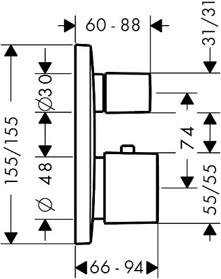 Термостат встр., с вентилем, внешняя часть Hansgrohe Pura Vida 15775000 купить по доступной цене