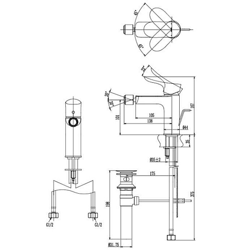 TOTO TRG01301R GO Сместель для биде с донным клапаном, цвет хром
